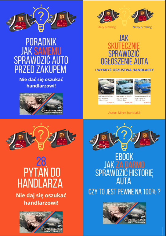 Bonusy dokładnie opisane są powyżej w sekcji o poradniku. Bonusy to albo dodatkowe pliki PDF albo plik pdf oraz filmiki video pokazujące jak sprawdzać auto samemu jak profesjonalista. Zrobione jest to na 2 różnych autach aby pokazać różnice.